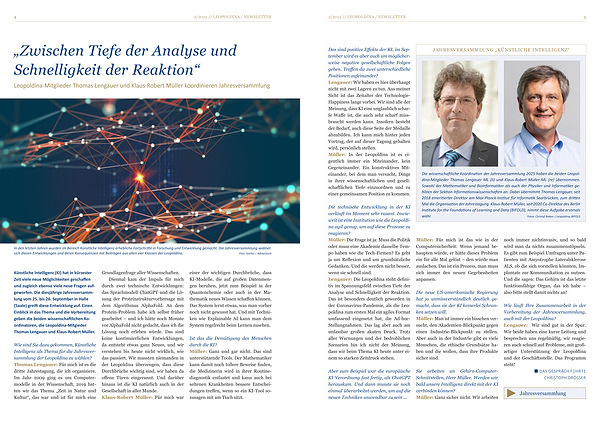 Künstliche Intelligenz( KI) hat in kürzester Zeit viele neue Möglichkeiten geschaffen und zugleich ebenso viele neue Fragen aufgeworfen. Die diesjährige Jahresversammlung vom 25. bis 26. September in Halle( Saale) greift diese Entwicklung auf. Einen Einblick in das Thema und die Vorbereitung geben die beiden wissenschaftlichen Koordinatoren, die Leopoldina-Mitgieder Thomas Lengauer und Klaus-Robert Müller.